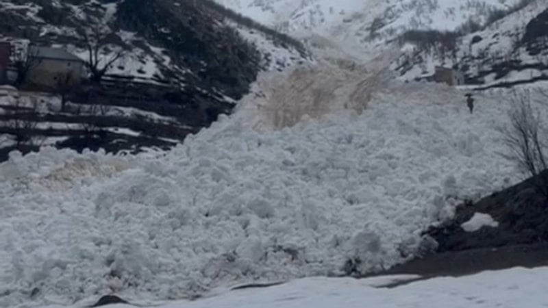 Hakkari'de Yüksekova ilçesine bağlı Yeşiltaş köyünde dağdan kopan dev kar kütlesi, yerleşim alanının hemen sınırında durdu.