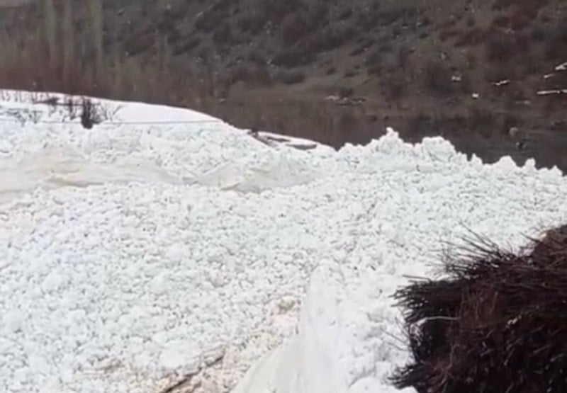Hakkari'nin Yüksekova ilçesine bağlı Yeşiltaş köyünde yerleşim yerlerine yakın bir noktaya düşen çığ, korkuya neden oldu.
