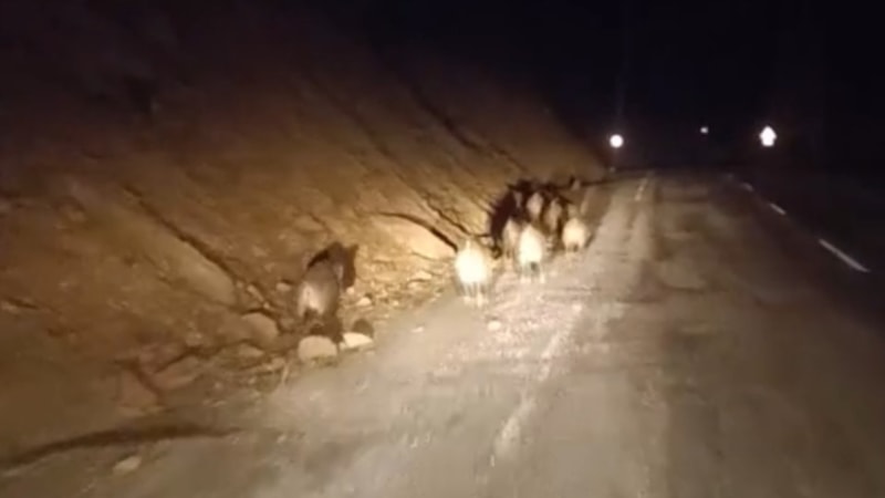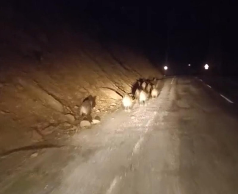 Yüksekova ilçesinde seyir halinde olan bir araç içerisinden domuz sürüsü görüntülendi. Sürünün bir süre yol kenarında ilerleyip dağlık alana yöneldikten sonra gözden kaybolduğu kaydedildi.