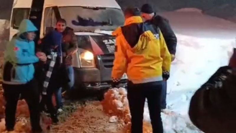 Fırtınadan dolayı yaşanan arızaları gidermek için Şemdinli ilçesi kırsalındaki elektrik arızasına giden VEDAŞ arıza ekipleri, yoğun tipiden dolayı yolda ilçeye bağlı Kayalar köyü yakınlarında mahsur kaldılar.