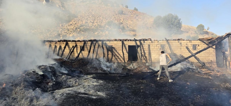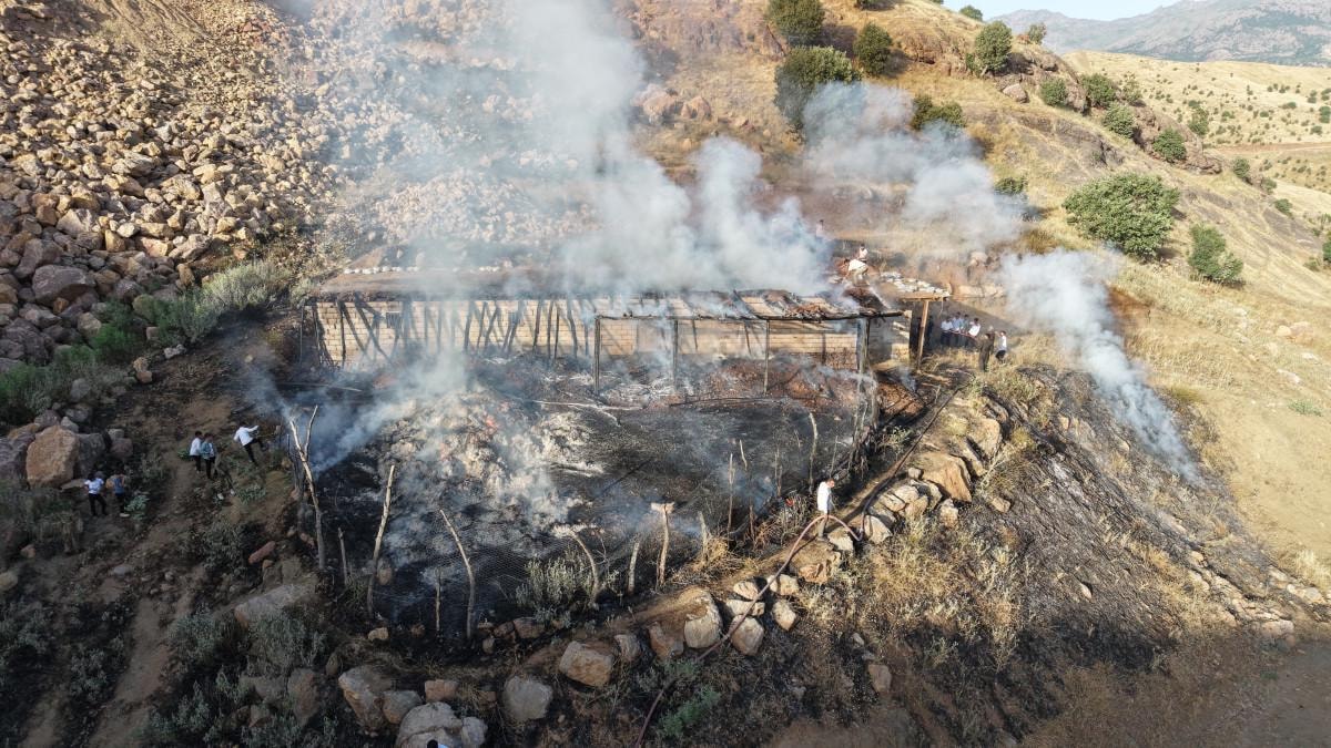 Hakkari’nin Derecik ilçesine bağlı Samanlı köyünde Hamdi Yalçın'a ait ahırda henüz belirlenemeyen bir nedenle yangın çıktı.