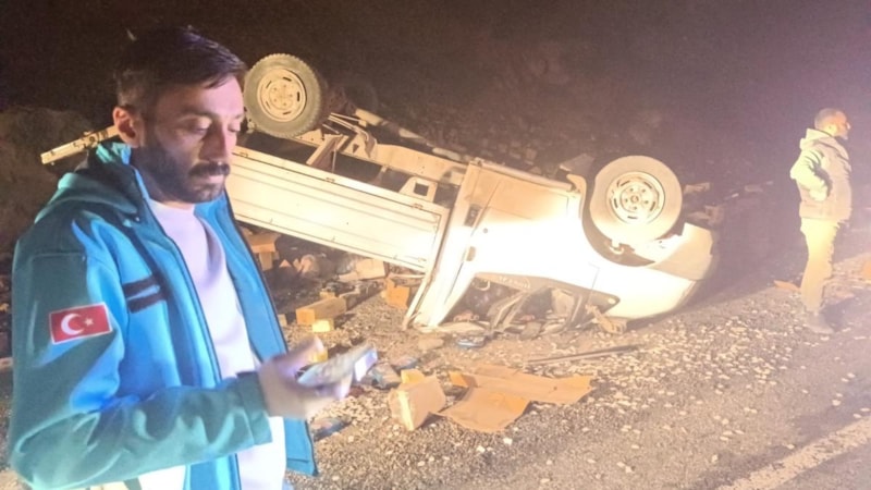 Hakkari'de gece yarısı Zap Vadisindeki şehir çöplüğü mevkiinde, sürücüsünün ismi ve plakası öğrenilemeyen kamyonet, seyir halinde iken lastiğin patlaması sonucu takla attı.
