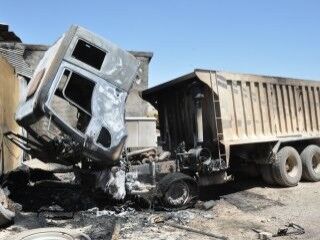 Şantiyede 3 kamyon, şantiyeye ait malzeme ve idari bölüm yakılarak kullanılamaz hale getirildi.