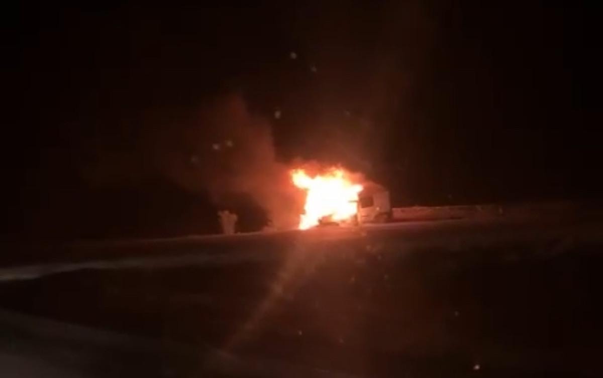Hakkari'de akşam saat 22.40 sıralarında ilçenin Esenyurt Mahallesi'nde bulunan TOKİ evlerinin yolunda akşam saatlerinde TOKİ yolunda sürücüsünün ismi ve plakası öğrenilemeyen ticari araç bilinmeyen bir nedenden dolayı yolda alev aldı.