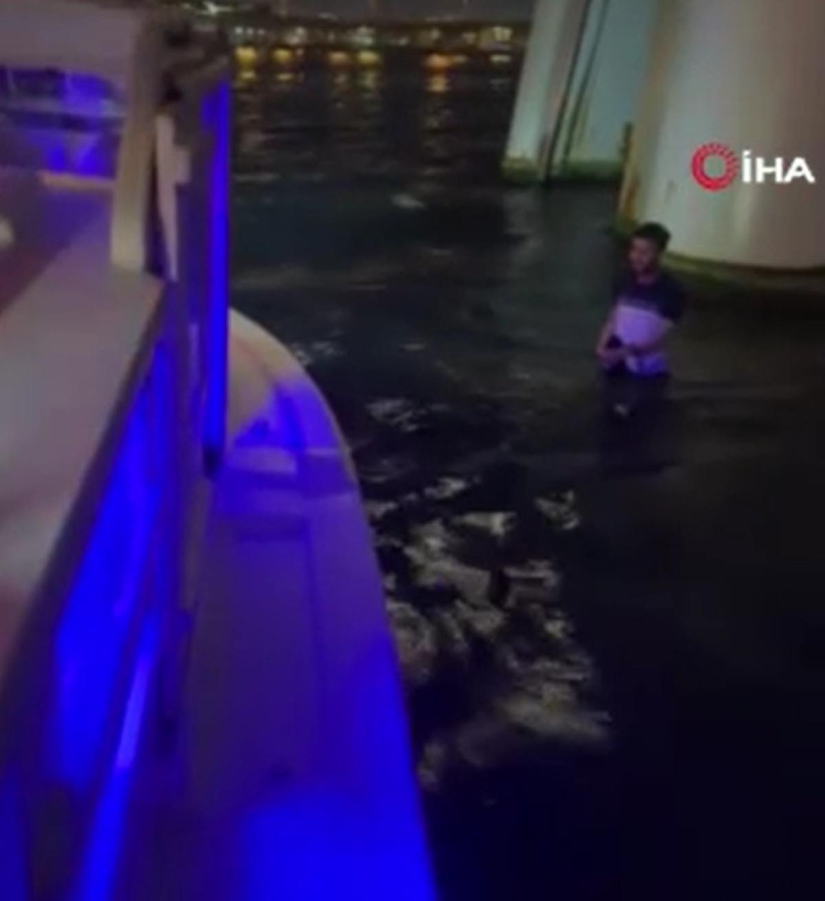 Saat 00.00 sıralarında İstanbul Haliç Metro Köprüsü üzerinde meydana gelen olayda, bilinmeyen bir nedenle köprüden denize düşen genç, çırpınarak yardım istedi.