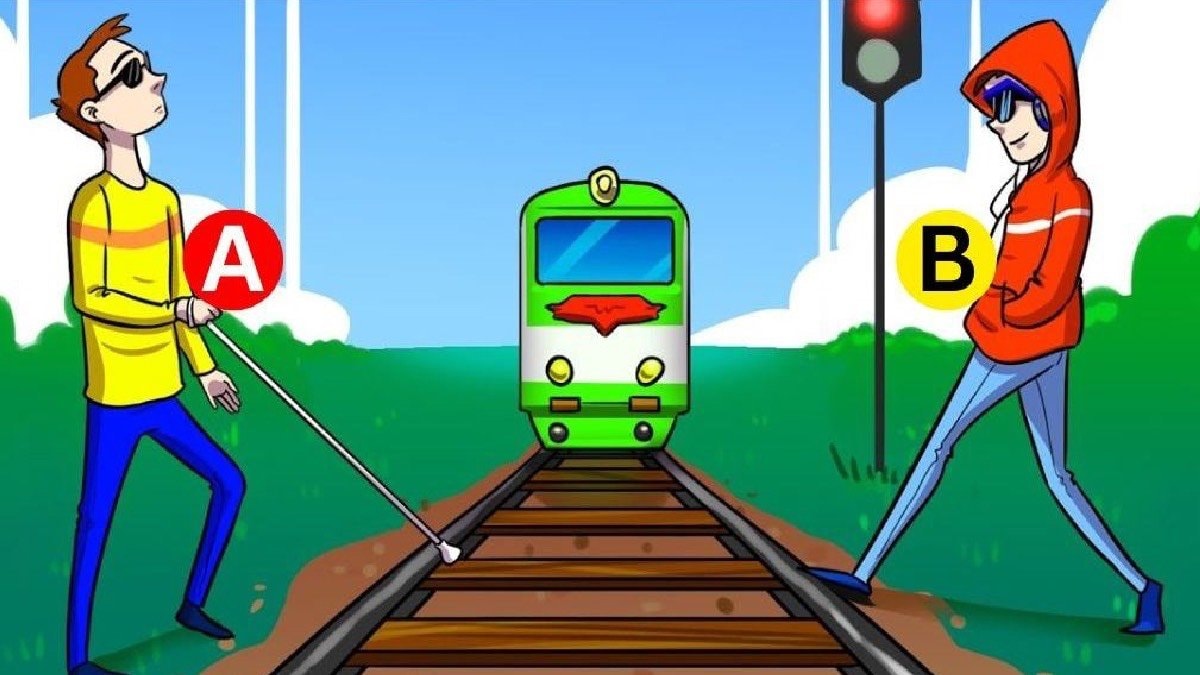 Biri elinde bir sopayla duruyor ve görmüyor. Diğer adam treni görebiliyor.