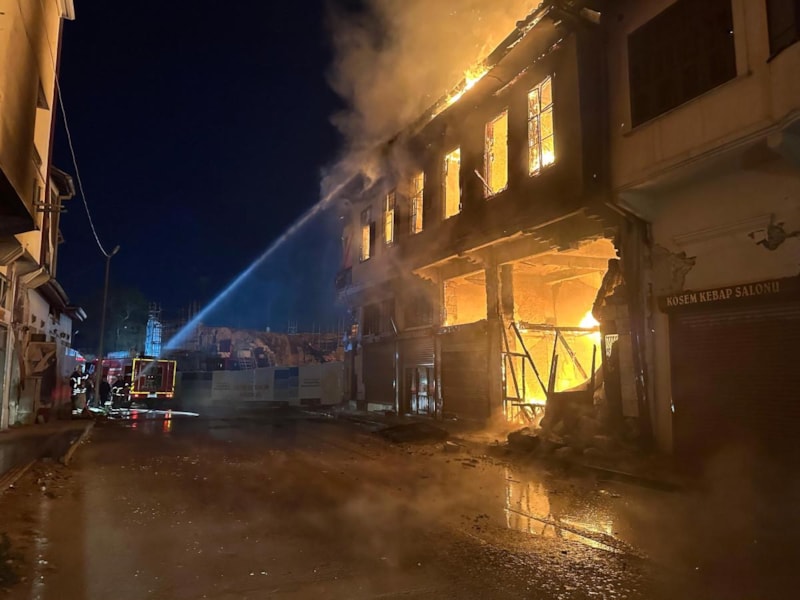 Yangında ahşap bina zarar gördü. Binanın alev alev yandığı anlarsa cep telefonuyla görüntülendi.