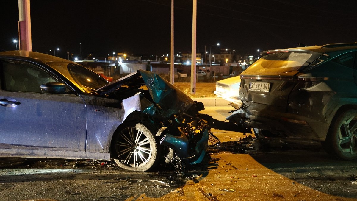 Hatay'ın Antakya ilçesi Gülderen kavşağında 35 CSM 03 plakalı BMW marka otomobil, 31 AOJ 341 plakalı Hyundai marka otomobil ile çarpıştı.