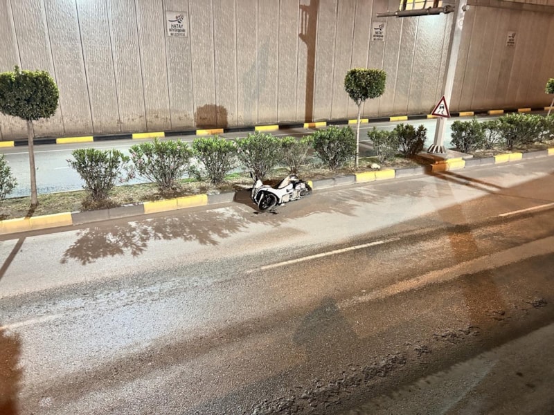 Hatay'da İskenderun ilçesi Prof. Dr. Muammer Aksoy Caddesi'nde sürücüsü henüz belirlenemeyen motosiklet, ıslak yolda kontrolden çıktı.