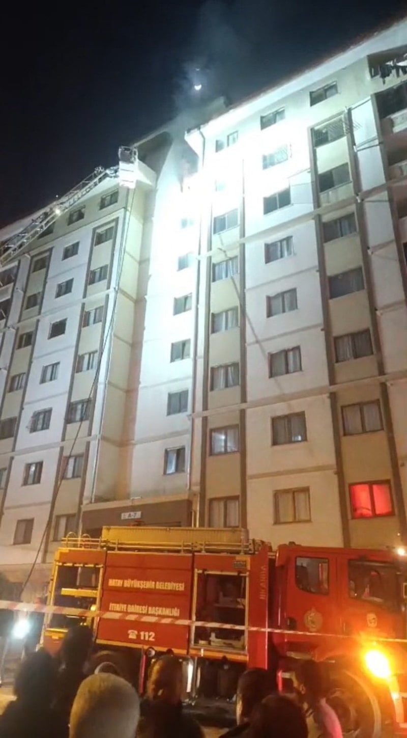 İskenderun ilçesinde 8 katlı bir apartmanın en üst katında çıkan yangında bina içeresinde biriken dumandan etkilenen 13 kişi hastaneye kaldırıldı.