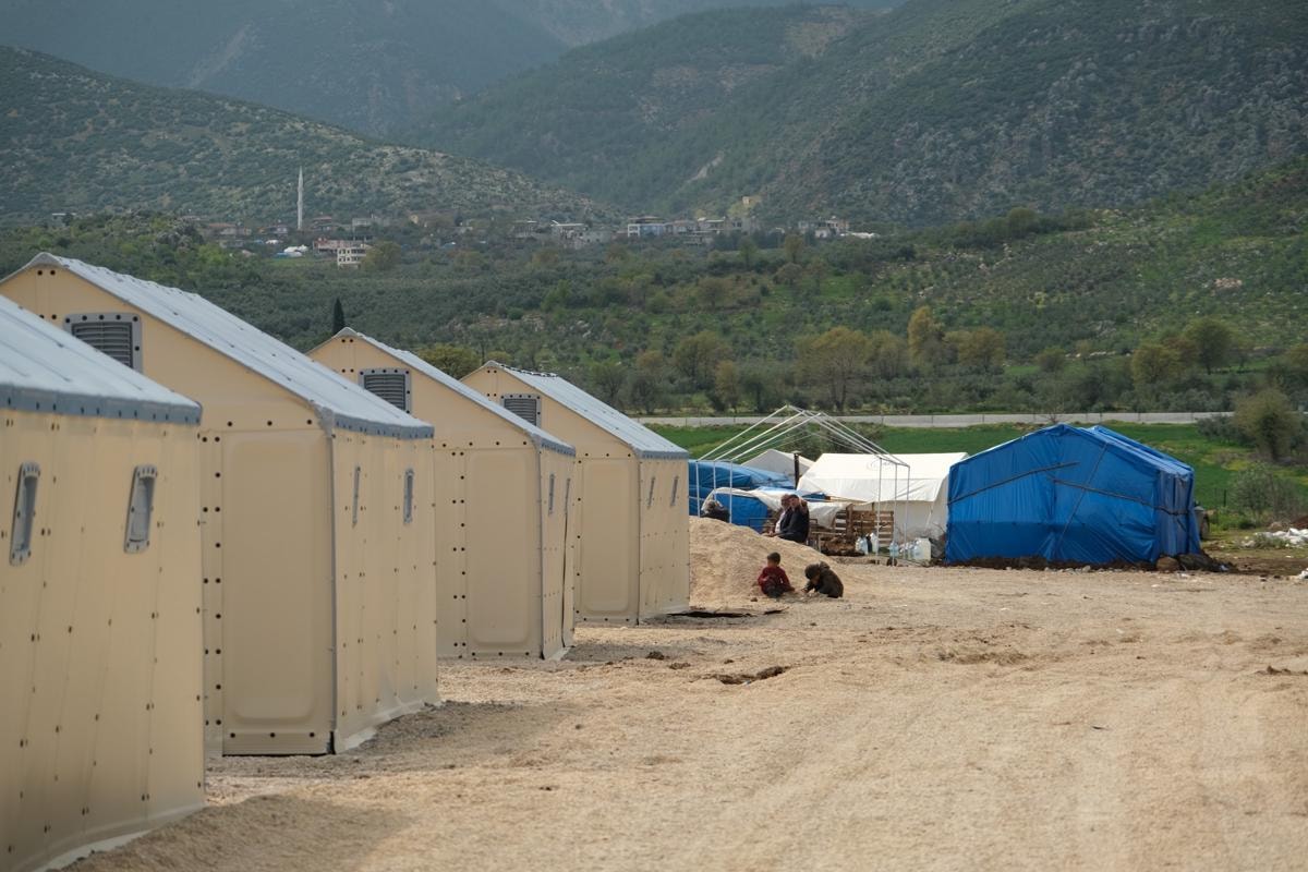 Geçici olarak çadır kentte yaşamlarını sürdüren mahalleli için bölgede geçici konteyner konutların inşası devam ediyor.