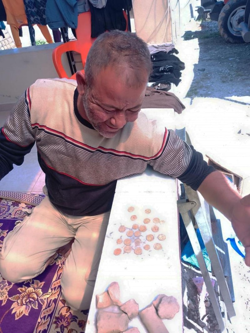 Zeytinlerimiz daha iyi olsun diye traktörümüzle bahçeyi sürüyordum. O esnada çapaya bir tane kırık testi denk geldi, inip baktığımda içinde altın vardı. İçinde altın sikke vardı, onları aldım ve devletimize teslim ettim. İçerisinden 22 tane Bizans dönemine altın sikke çıktı. Biz zeytin hasadının iyi olmasını beklerken topraktan altın sikke hasat ettik bu yıl. Memnunuz, devletimiz memnun. Bizler çok şaşırdık, mahallede yaşayanlar olarak. Bütün akrabalarımız bizleri aradı, bütün akşam telefonlarımız susmadı. Devlete teslim etmekle en iyisini yaptın diyenler de oldu, farklı şeyler söyleyenler de oldu. Niye teslim ettin, niye kuyumcuya satmadın daha iyi para ederdi diyenler oldu. Biz tarihimizin ortaya çıkması için bunları devletimize teslim ettik. Antakya ilçesindeki Saçaklı Mahallemiz tarihi açıdan zengin.