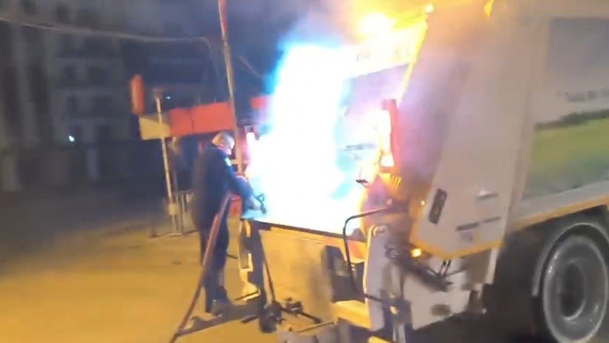 Hatay'da Antakya ilçesi Aksaray Mahallesi’nde çöp toplayan kamyon, çöp topladığı esnada çöplerin alev almasıyla yanmaya başladı.