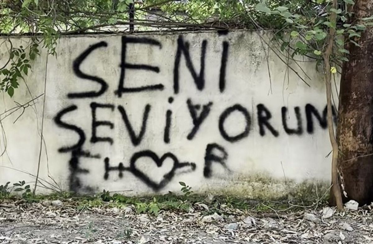 - Hatay'da bir vatandaş duvara "Seni seviyorum" yazıp kalp çizdi.