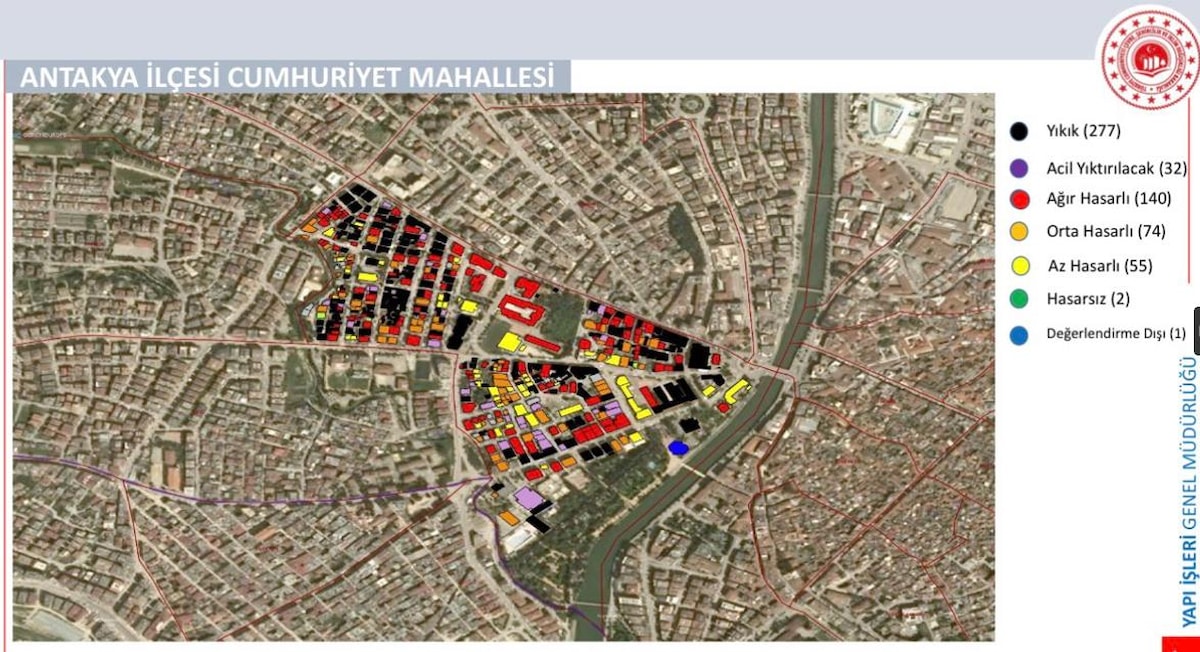 Birpınar, Antakya ilçesi Cumhuriyet Mahallesi'nin deprem sonrası hasar haritasını paylaştı.