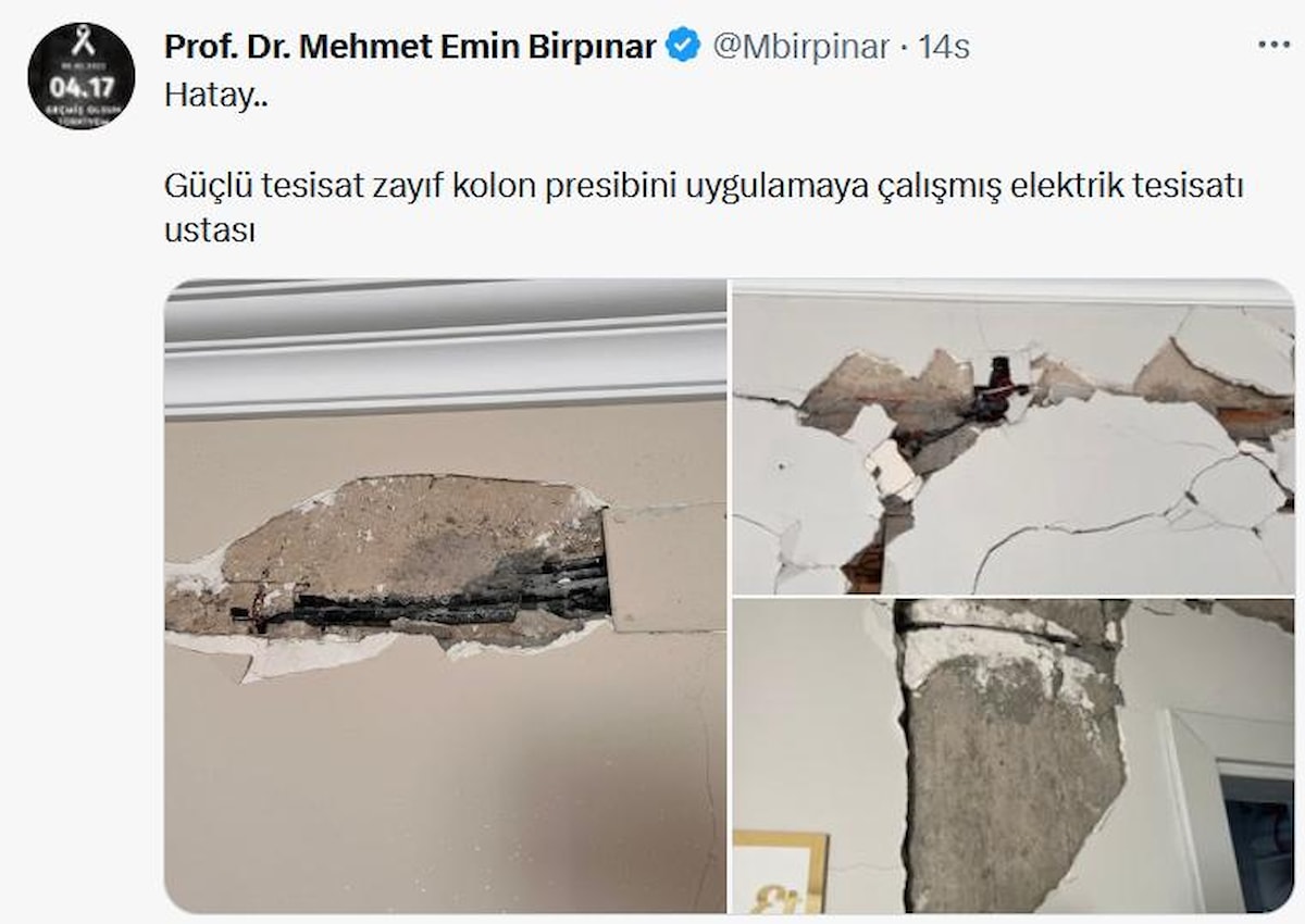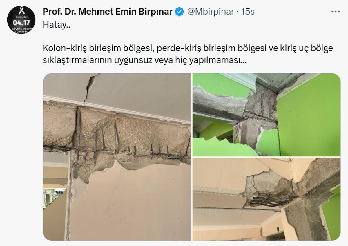 Deprem bölgesinde hasar gören binalarla ilgili paylaşımlarda bulunan Birpınar, binaların yapımı sırasında meydana gelen ihmaller zincirini şu paylaşımlarla gösterdi: