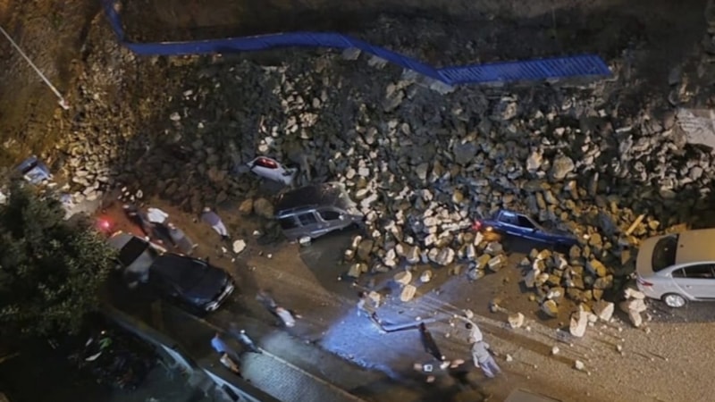 Hatay'da istinat duvarının çökmesi sonucu park halindeki 7 araçta hasar oluştu.
