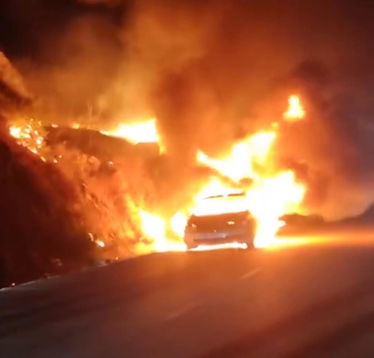 Hatay'ın Altınözü ilçesi Yunushan Mahallesi mevkiinde trafikte seyir halindeyken motor kısmı yanmaya başlayan otomobil kısa sürede alev topuna döndü.