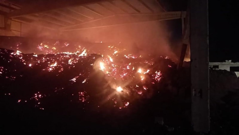 Fabrikanın pamuk atıklarının bulunduğu depoda alevler yükseldi.