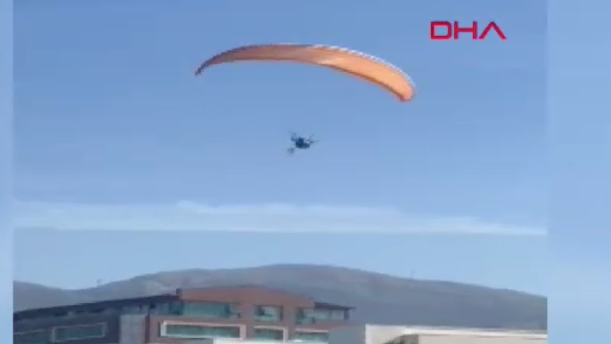 Hatay’ın İskenderun ilçesinde paraşüt pilotu İlker Özgüven, Amanos Dağlarının eteğinden atlayış gerçekleştirdi.