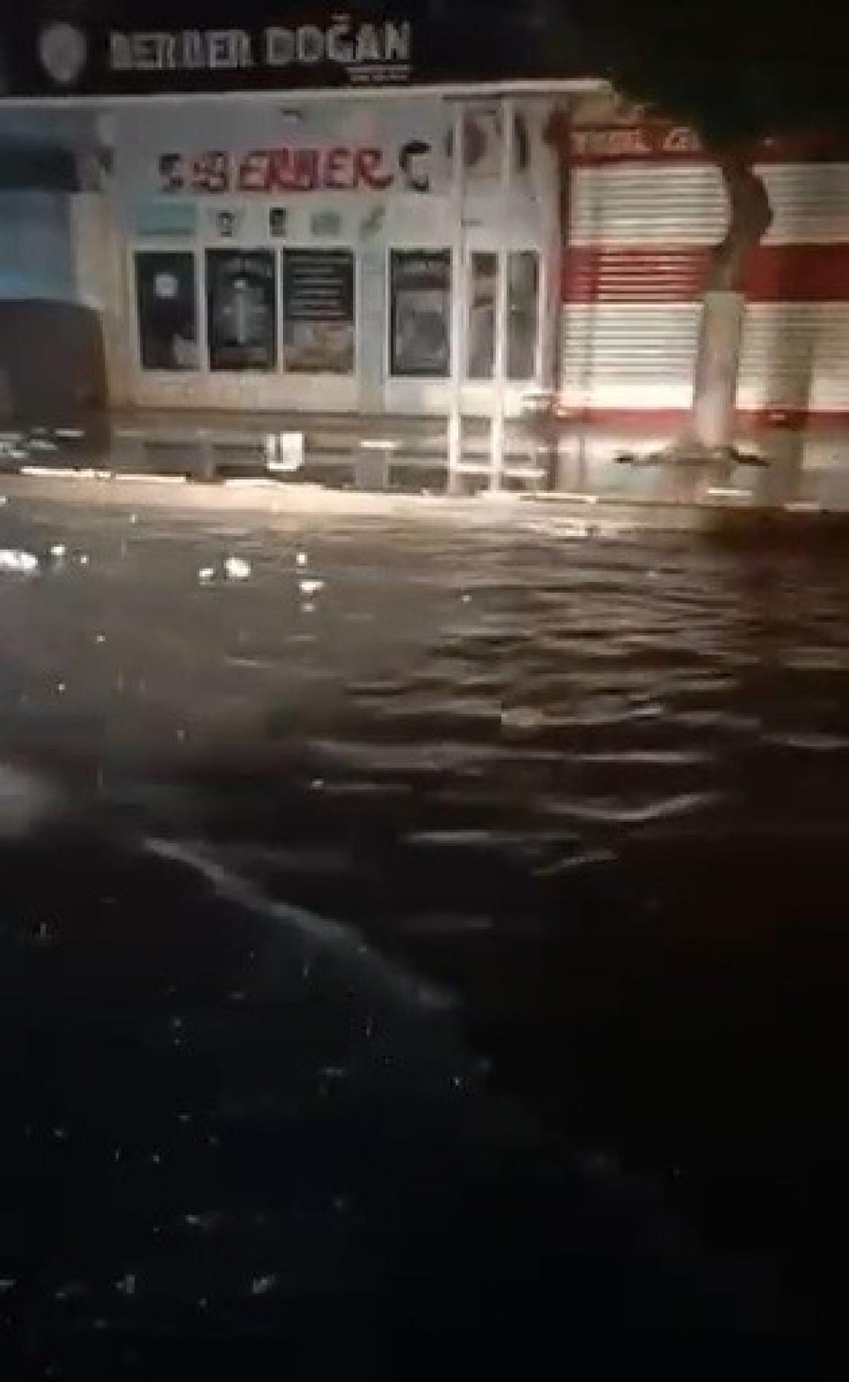 Vatandaşlar göle dönen caddelerde araçlarıyla zorlukla ilerlerken bazı iş yerleri sular altında kaldı.