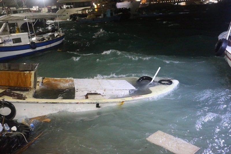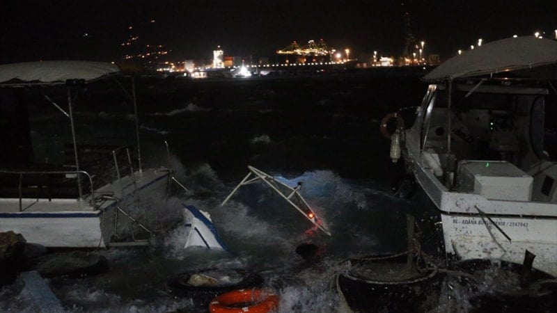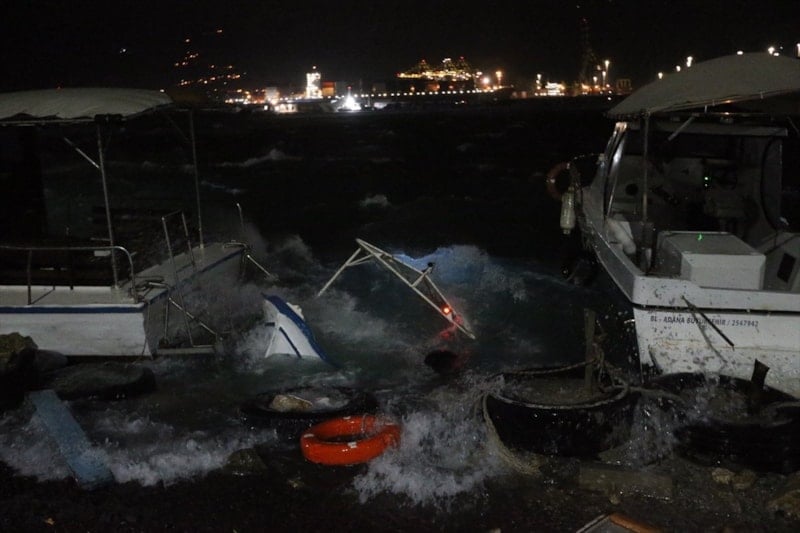 İskenderun Balıkçı Barınağı’nda bağlı bulunan 7 tekne fırtınanın etkisiyle alabora oldu. Şiddetli rüzgarın etkisiyle bazı ev ve iş yerlerinin çatıları uçarken, kent genelinde ağaçlar kökünden söküldü, reklam panoları devrildi ve elektrik hatlarında kopmalar yaşandı.