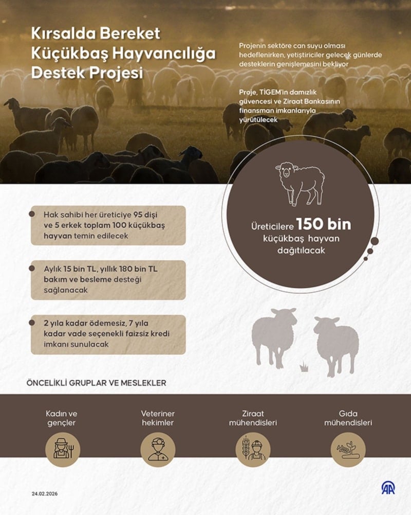 - Hak sahibi her üreticiye 95 dişi + 5 erkek olmak üzere toplam 100 baş küçükbaş hayvan temin edilecektir.