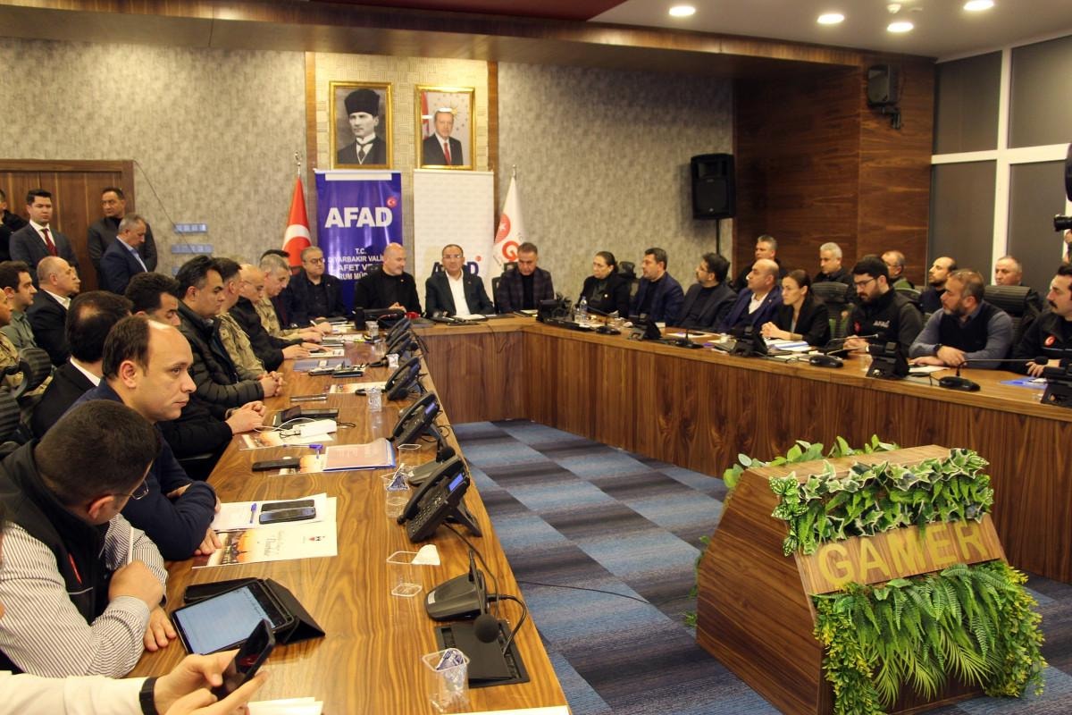 İçişleri Bakanı Süleyman Soylu, Kahramanmaraş merkezli depremlerden etkilenen iller arasında yer alan Diyarbakır’a geldi.