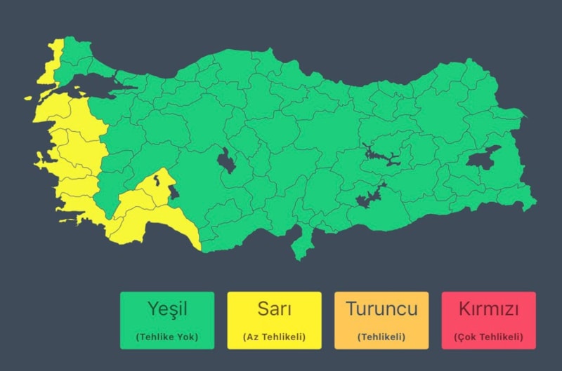 MGM'den alınan bilgiler doğrultusunda 10 ilin 'sarı' kodla işaretlendiği Türkiye haritası paylaşıldı.