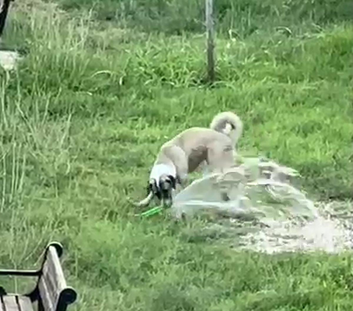 Öte yandan, bir köpek de parkta hortumdan akan suyla dakikalarca oynadı.