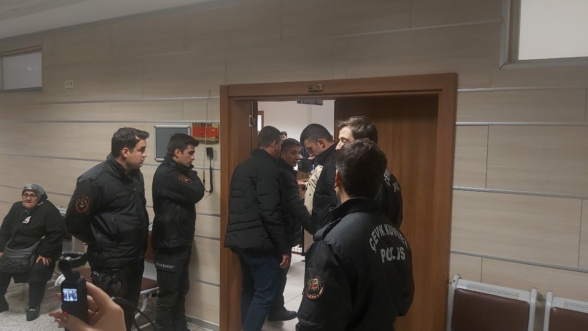 Öte yandan sanık yakınları ile müştekiler arasında adliye bahçesinde çıkan tartışmaya polis ekipleri müdahale etti.
