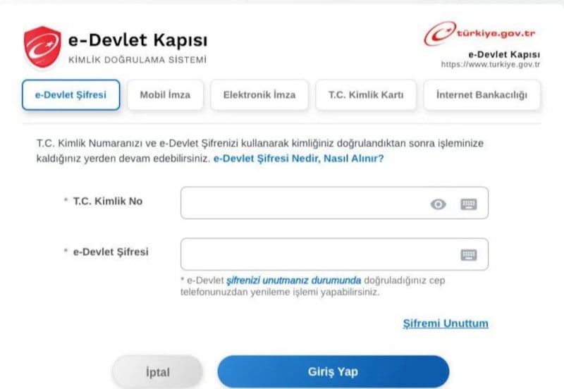 1. www.turkiye.gov.tr adresine giriş yapın.