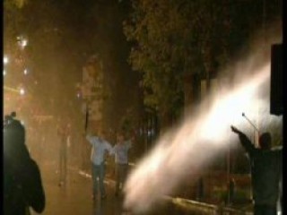 Eylemciler arasından ayrılan 2 vatandaş polislerin üzerine doğru yürüdü. Ellerini havaya kaldıran ve birisinde şemsiye olduğu görülen 2 kişinin üzerine bu sırada TOMA'lardan tazyikli su sıkıldı. Eylemciler hem tazyikli sudan korunmak, hem de TOMA'nın ilerlemesini önlemek için yolda dizlerinin üzerine çöktü. TOMA, 2 eylemci sayesinde daha ileriye gidemedi.