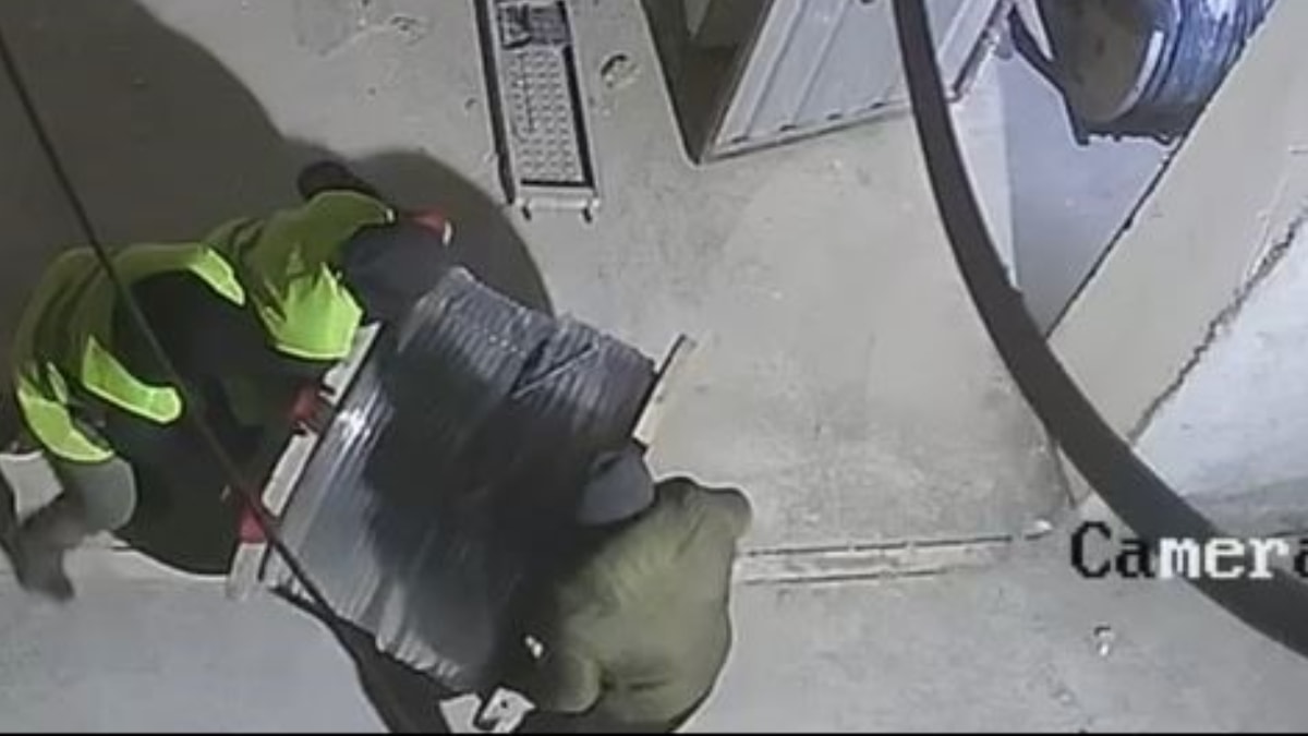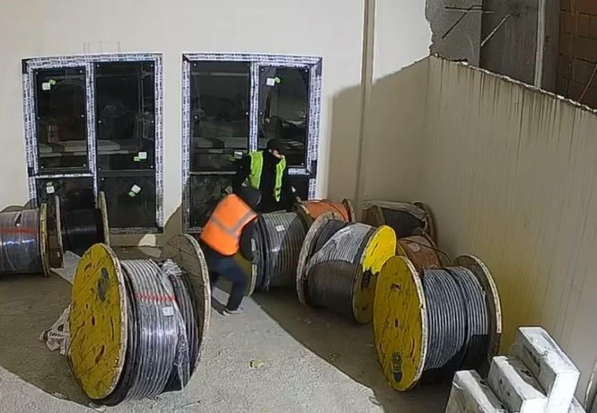 Görüntülerde, hırsızların inşaata girip dev kablo rulolarını çaldıkları görülüyor.