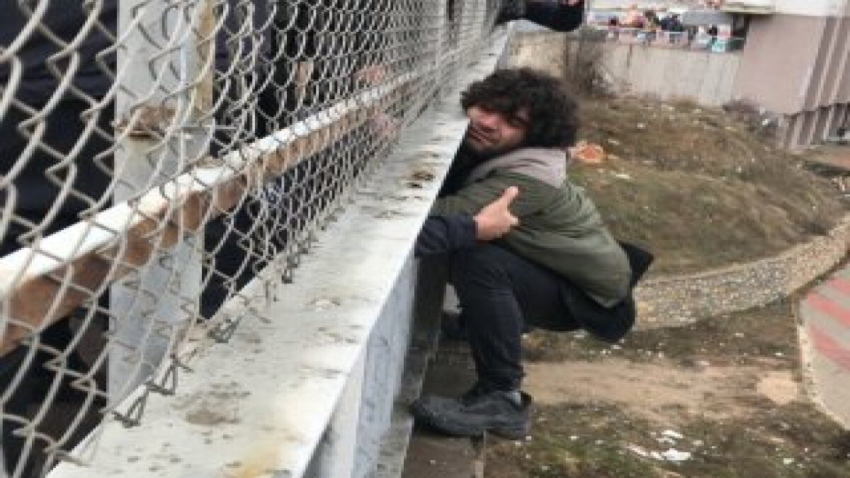 Köprü korkuluklarına tutunan ve yaklaşık 60 metreden aşağı sallanan İnan'ı, kurtarmak için emniyet görevlileri uzun uğraş verdi.