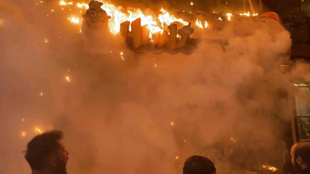 Alevlerin arasında işletmeyi terk eden müşteriler büyük panik yaşarken, itfaiye ekipleri gelene kadar vatandaşlar yangın tüpleriyle alevleri söndürmeye çalıştı.