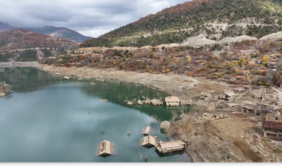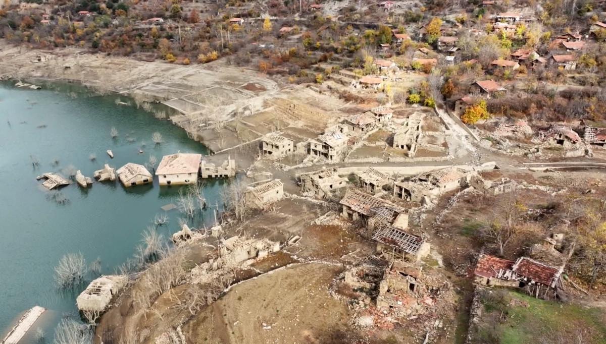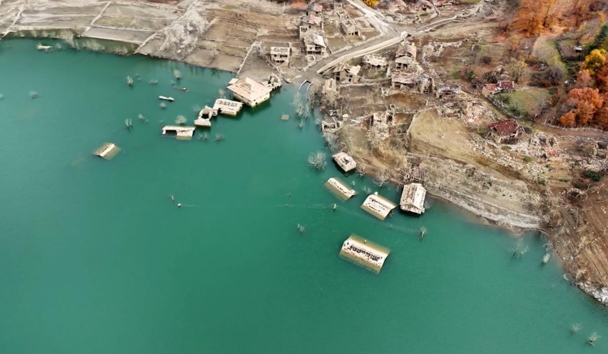 Sonbahar mevsiminde dalları kurumaya başlayan ağaçların çevrelediği köyde, su seviyesinin azalmasıyla ortaya çıkan taş evler, cami, elektrik nakil hatlarıyla bazı sokaklar, seyirlik görüntü oluşturdu.