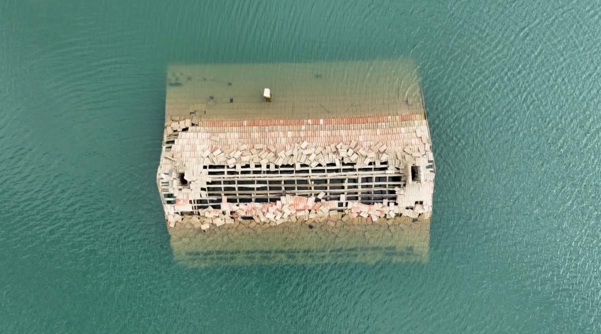 Isparta'da 'batık köy' adıyla bilinen Darıbükü'ndeki taş evler, su seviyesinin azalmasıyla gün yüzüne çıktı.