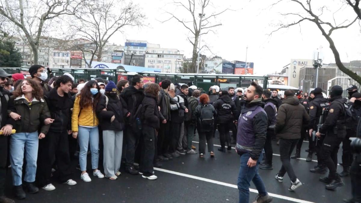 Sık sık 'Aylin Hoca yalnız değildir' sloganı atan öğrenciler Beşiktaş Meydanı'nda basın açıklaması yaptı.