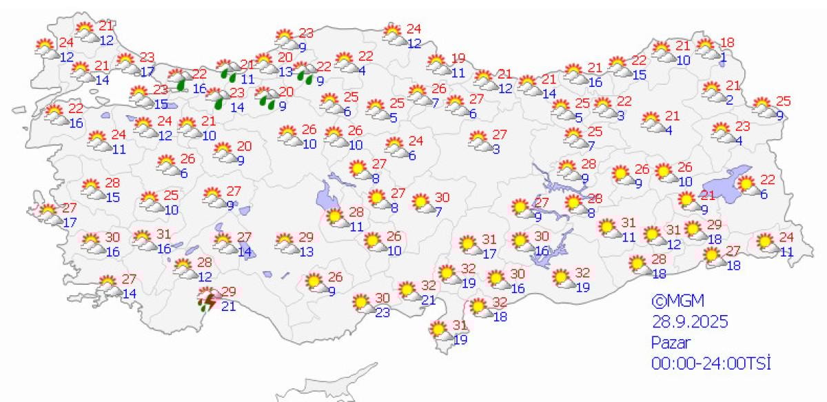 - İstanbul başta olmak üzere, 13 ilde sıcaklıkların 20 derece altına düşmesi bekleniyor.