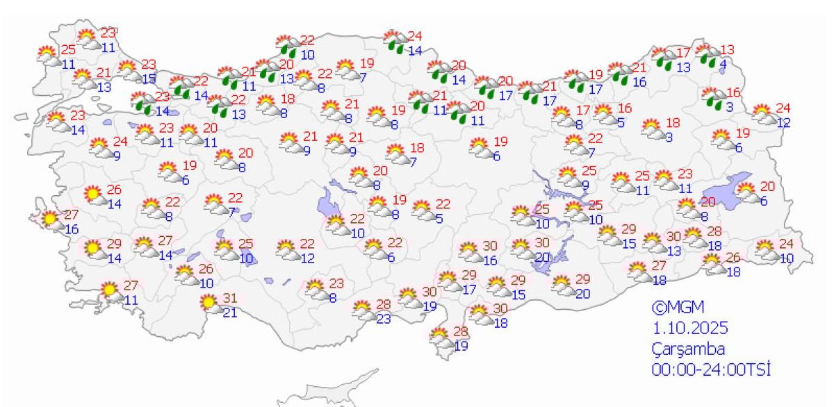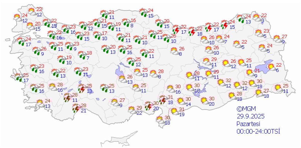 - Meteoroloji, Marmara, Ege ve Karadeniz için fırtına ve sağanak yağış uyarısı yaptı.