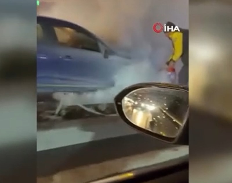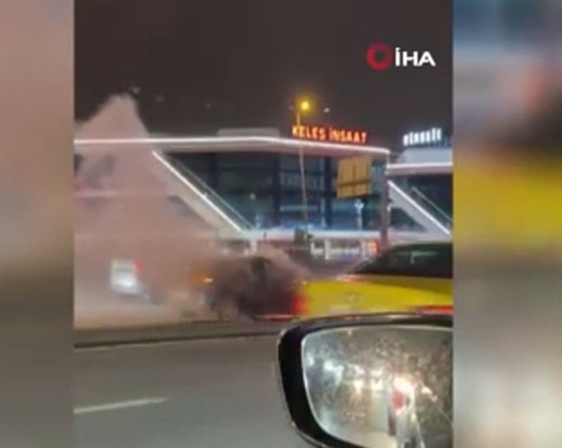 E5 Karayolu Esenyurt mevkiinde seyir halinde bulunan araç bir anda alev aldı. Çıkan yangın nedeniyle araçta hasar meydana gelirken, o anlar cep telefonu kameralarına yansıdı.