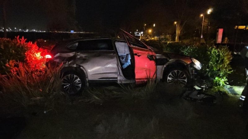 Çarpmanın etkisiyle takla atan araç parktaki ağaçlara çarparak durabildi.
