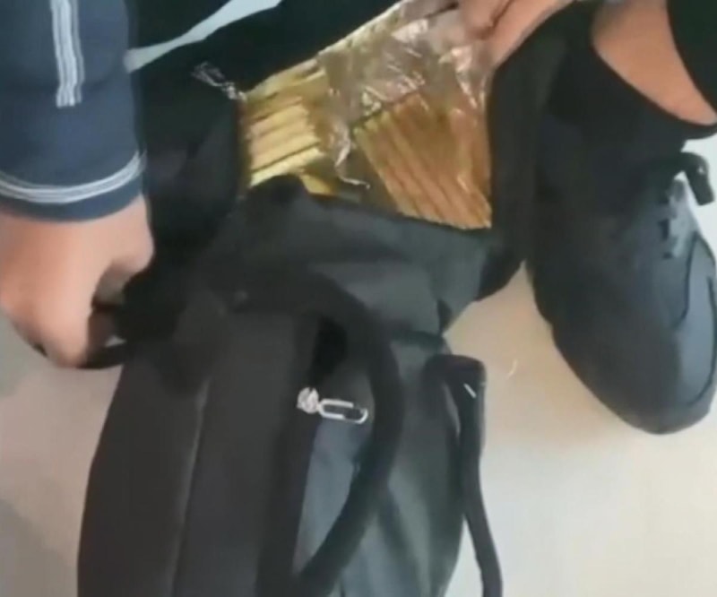 X-ray kontrolünde sinyal alan polis ekipleri, bebek arabasında bulunan bebeği sevdiği sırada, ayağıyla bebek arabasının altını kontrol etti. Kontrol sırasında polis ekipleri, bebek arabasının altına gizlenmiş çanta olduğunu tespit etti.