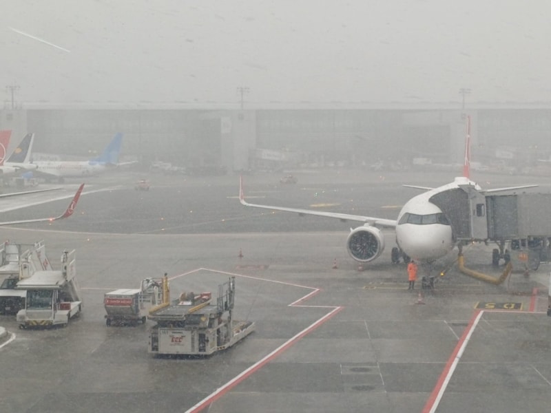 İstanbul genelinde dün geceden itibaren aralıklarla etkili olan kar yağışı İstanbul Havalimanı ve çevresinde de görülmeye başladı.