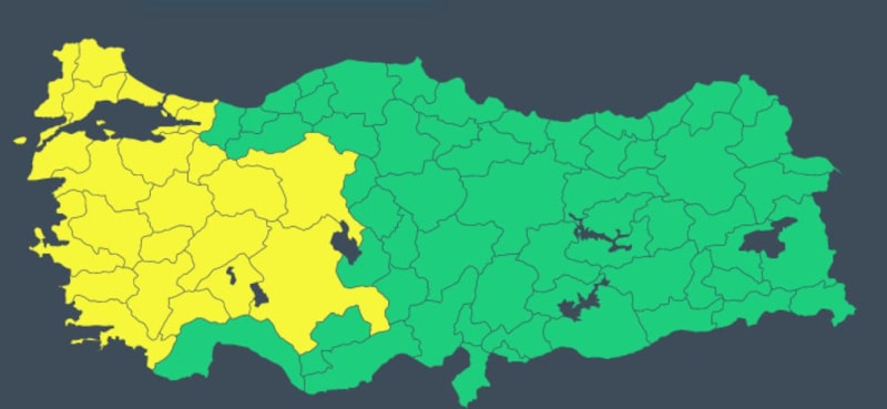 Sarı kodlu uyarı yapılan iller şöyle sıralandı: