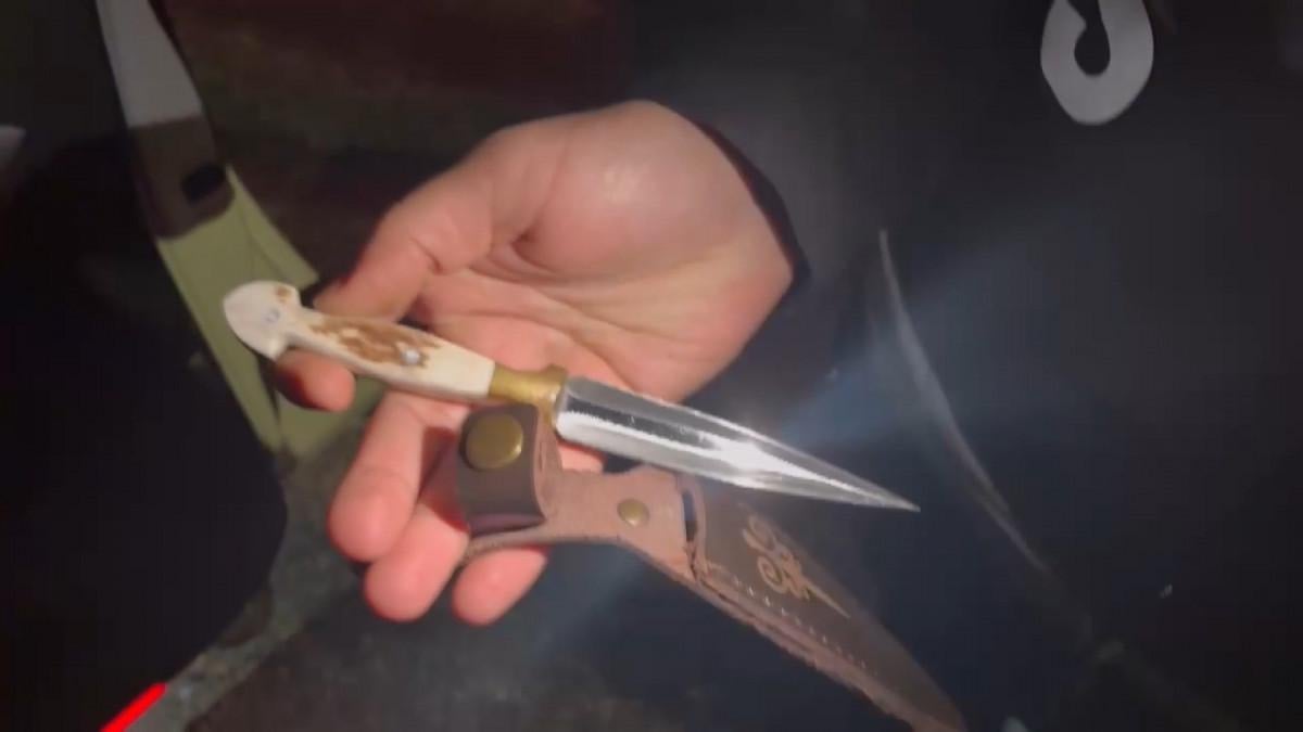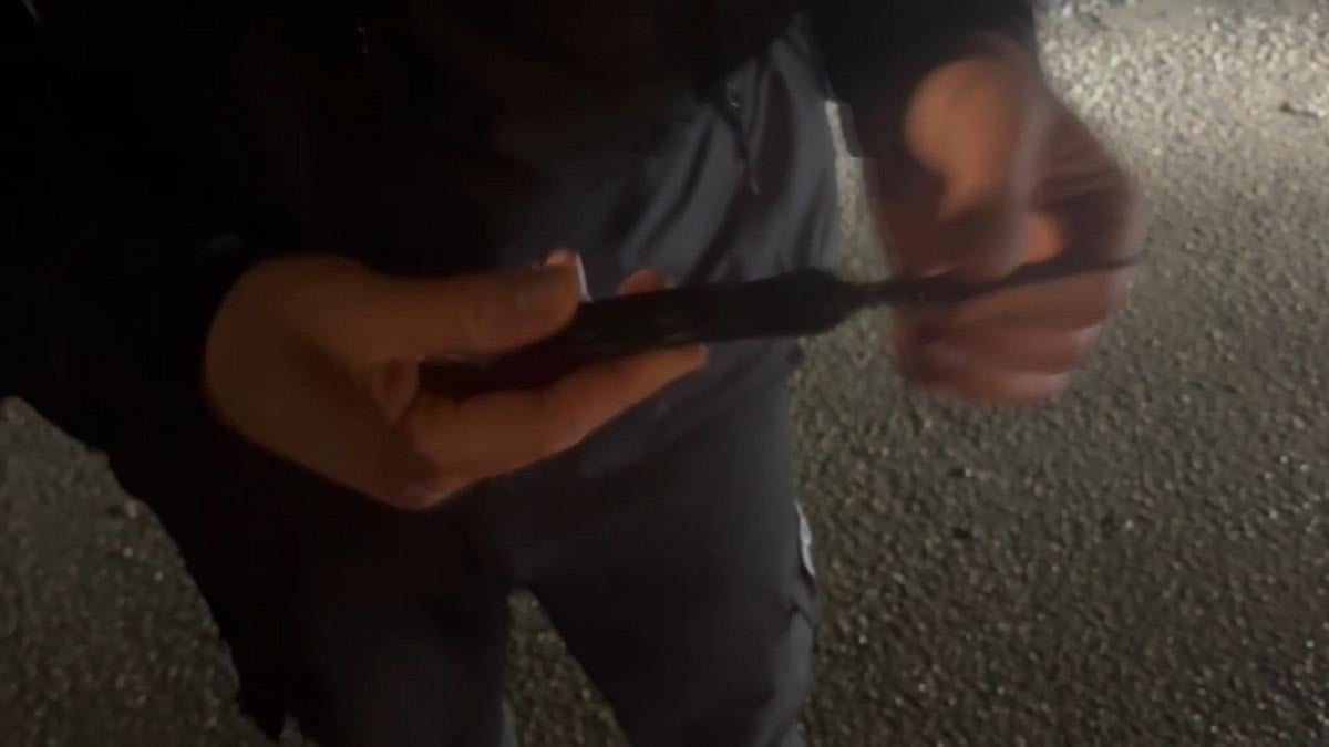 Polis şüphe üzerine bir otomobili durdurdu. Otomobilde yolcu olan Çağatay Soylu’nun üst aramasında bıçak ele geçirildi.