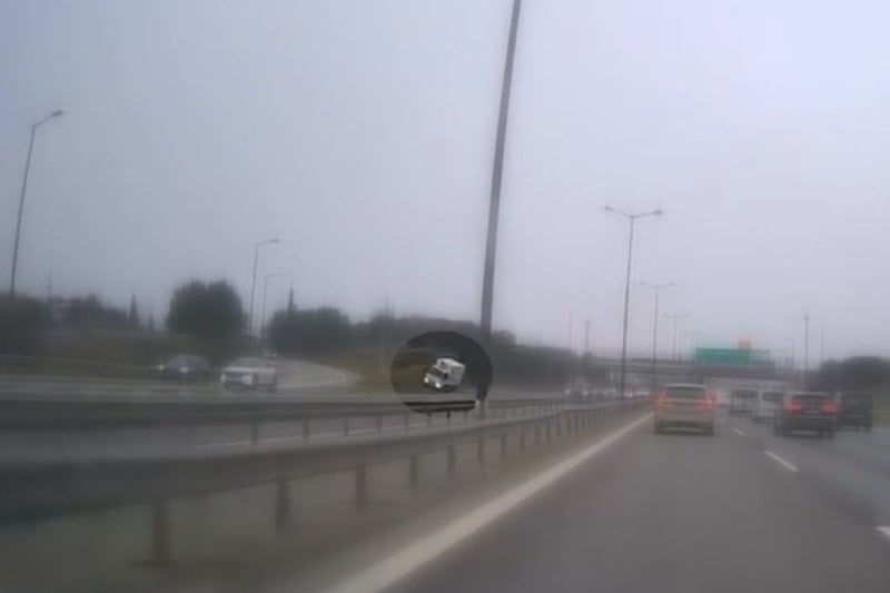 Kaza anı başka bir sürücünün araç kamerasıyla kaydedildi.