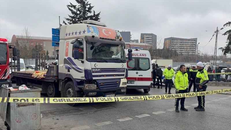 İstanbul'un Sancaktepe ilçesi Veysel Karani Mahallesi'nde kırmızı ışıkta yolun karşısına geçmeye çalışan kadına tır çarptı.