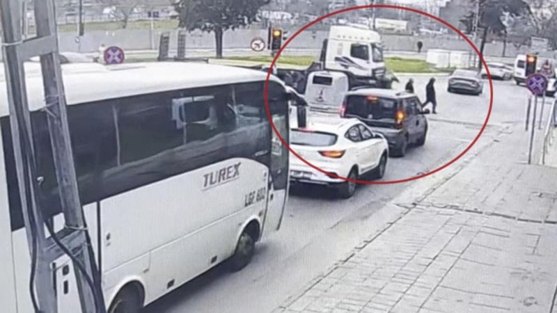 Görüntülerde kadının bir anda yola adım attığı, ardından manevra yapan tırın kör noktasında kalarak aracın altında sürüklendiği anlar yer aldı.